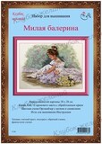 Вышитая картина: Маленькая девочка присела, чтобы завязать пуанты. Она – будущая балерина. Ее платьице, балетная юбка, аккуратно уложенная прическа, возможно, она станцевала свою первую партию на сцене. Рядом букет нежно-желтых роз. Это ее успех и награда. Вышивается картина крестом и полукрестом в 2-4 нити. Для смешанных тонов прилагается специальный диспенсер. Дополнительные стежки, делающие картину такой прорисованной, выполнены обратным стежком. В работе использовано 40 цветов мулине.