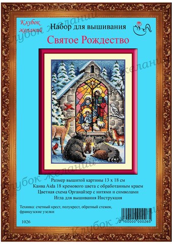Необычная яркая волшебная картина. Прекрасные витражи в церкви. В Сочельник, ночь перед Рождеством, все звери сошлись, чтобы увидеть священные теплый свет. В часовенке, среди леса, засияла рождественская звезда. Вся картина вышивается счетным крестом. Для смешанных тонов прилагается специальный диспенсер. Дополнительные стежки, делающие картину такой прорисованной, выполнены обратным стежком. В такой небольшой по размеру работе использовано 37 цветов мулине.