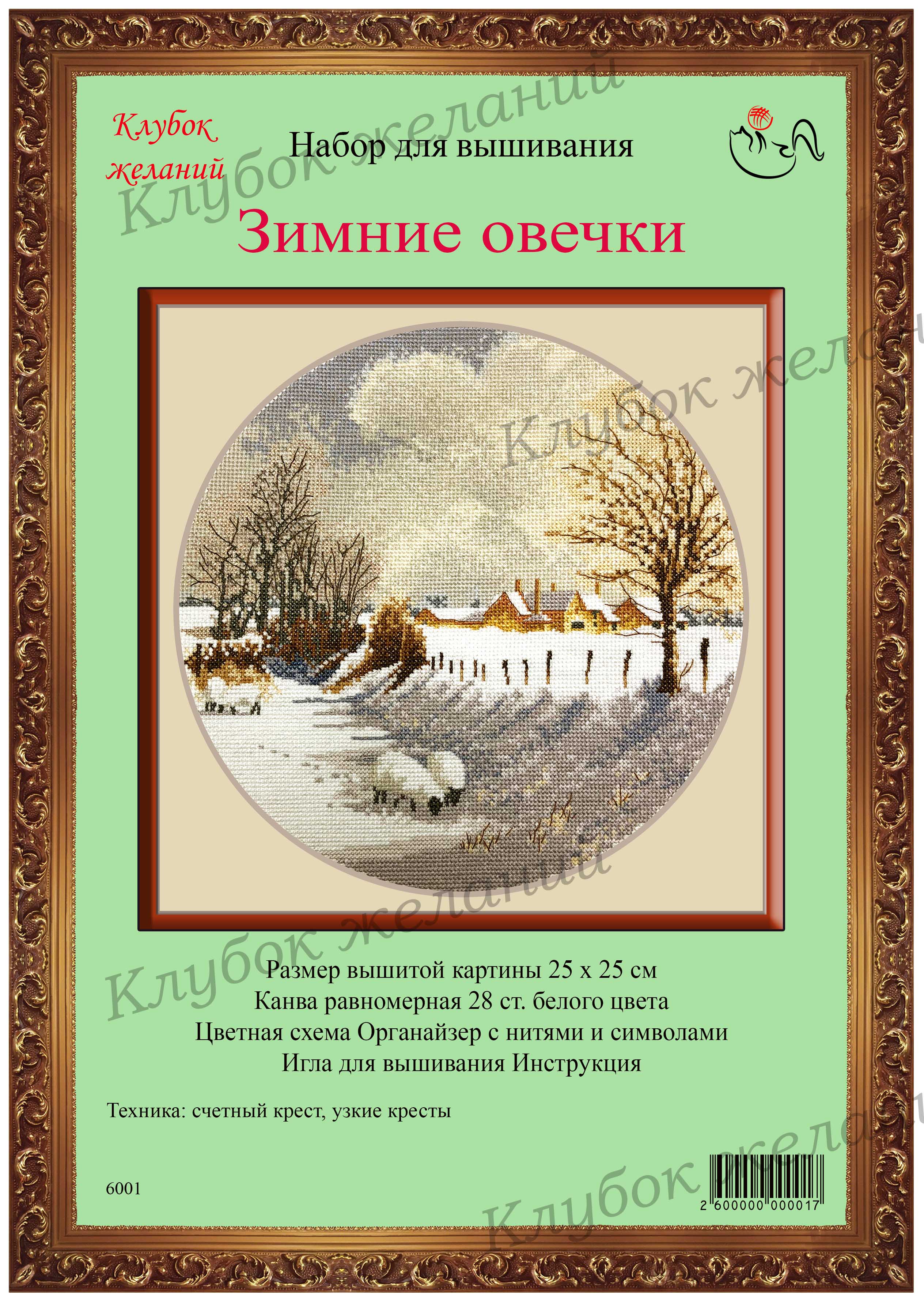 Вышитая картина: Сельский пейзаж. Зима. Поля укрыты снегом. Но сюда пришли пастись овцы. Они находят угощение под снегом. Картина выполнена в круге, словно кадр, сделанный фотоаппаратом. Особенностью дизайна являются узкие кресты, которыми дополнена картина. В комплект входит подробная инструкция. Много смешанных тонов, для них прилагается специальный диспенсер. Дополнительных деталей немного, они выполнены обратным стежком. Используется 24 цвета мулине. Ручная вышивка.