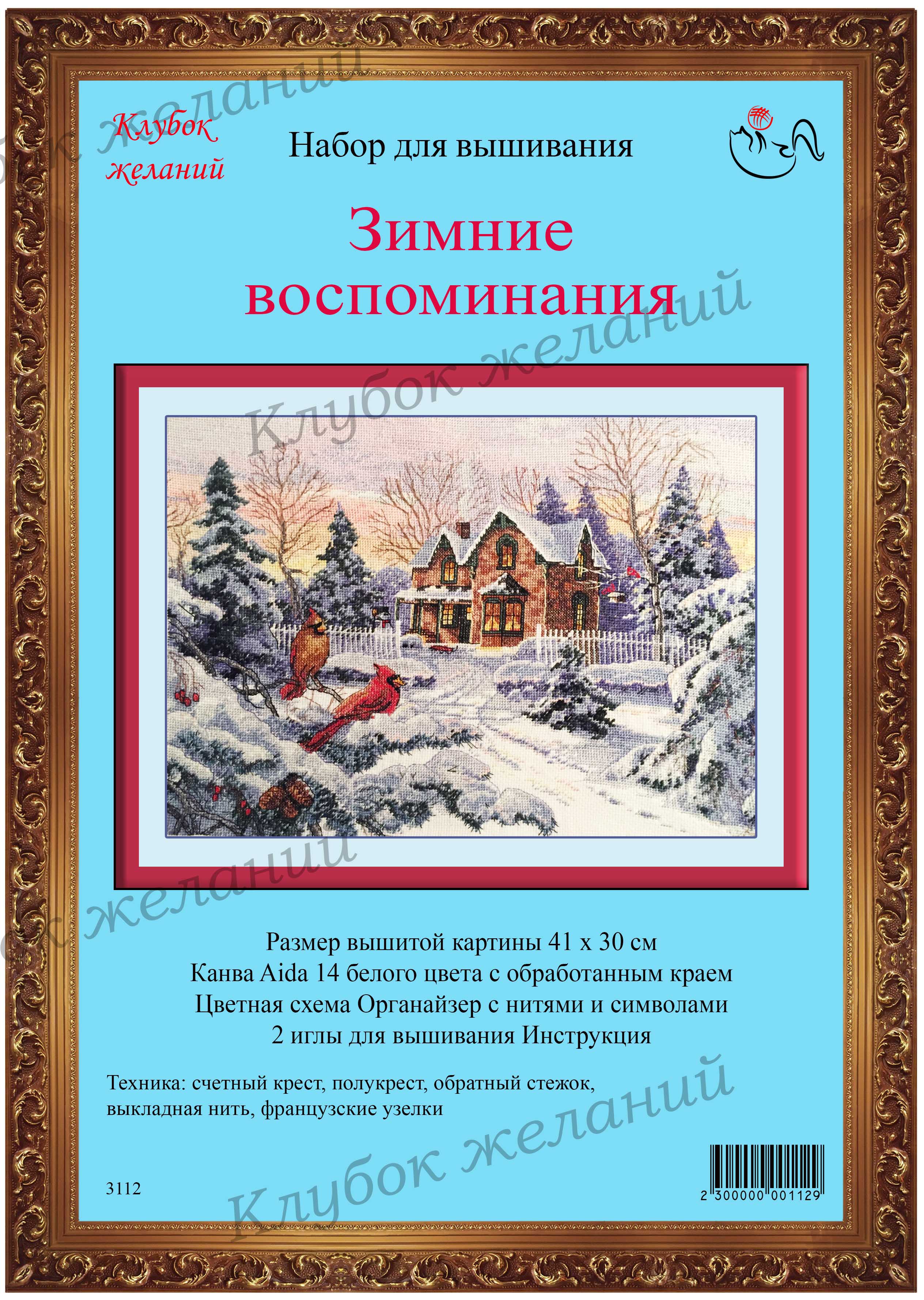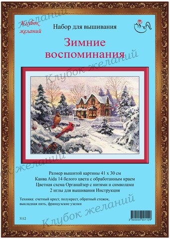 Вышитая картина: Зимний пейзаж. Все укрыто пушистым снегом. На дороге видны следы от саней. Они ведут к дому. Теплом светятся окна. Из трубы вьется дымок. И особый акцент- две птички-кардинала, сидящие на еловой ветке. Они- символы зимы и рождественских праздников. Особо проработана эта еловая лапа, шапки снега на ней. Шишки и хвоя благодаря обратным стежкам и выкладной нити, абсолютно натуральные. Много полукреста, вышивается быстро. Также много смешанных цветов, для них прилагается отдельный диспенсер. Используется 41 цвет мулине. Ручная вышивка.