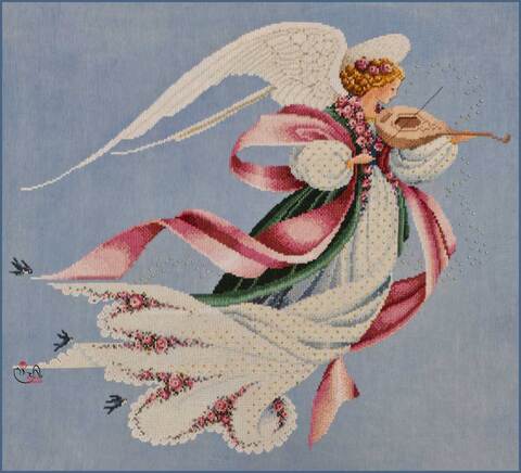 Вышитая картина: Это прекрасный весенний ангел. Раскинув белые крылья, в образе милой девушки, летит в голубом небе, играя на старинном струнном инструменте свою весеннюю мелодия, словно сообщая природе, что пора просыпаться, зима отступила и несет на своих крыльях весеннее тепло. Великолепное платье расшито золотыми нитями. Особенно эффектны края юбки, фестончатые, расшитые розами и бисером разных цветов. Настоящий шлейф из весенних цветов. И следом за ангелом летят ласточки, возвращаясь из дальних стран. Золотым бисером вышито сияние вокруг ангела. Прекрасно смотрится с другими ангелами этой серии – Ангел зимы – Арт.8078, Ангел лета – Арт. 8076, Ангел осени – Арт.8077 и другие. Используются 35 цветов мулине. Ручная вышивка.