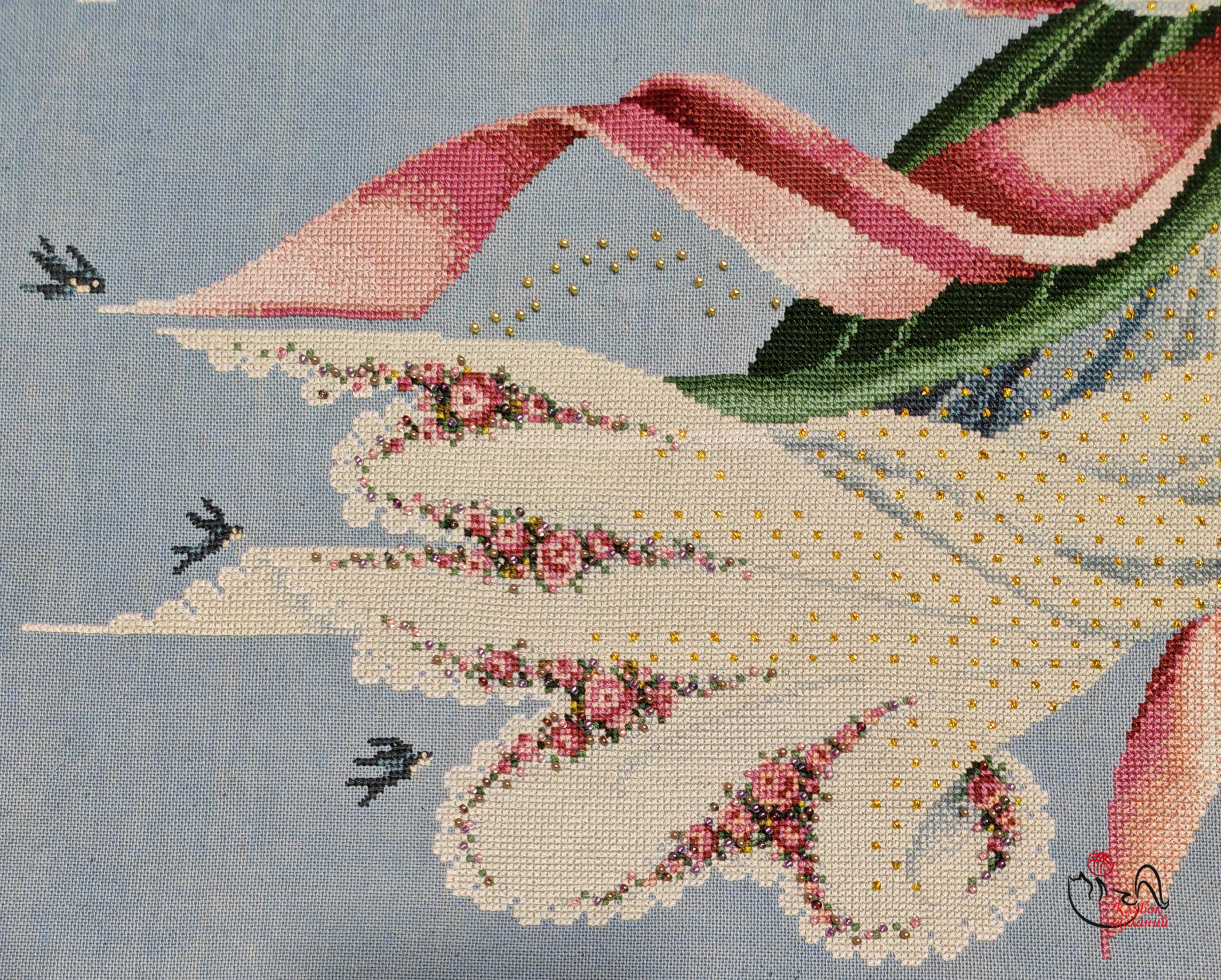 Техника выполнения: Счетный крест, обратный стежок, французские узелки, бисер.